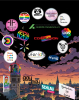 Jede Kategorie ist einer Farbe zugeordnet. Die Farben sind der (ursprünglichen) Pride-Flagge nach Gilbert Baker nachempfunden, und die hatte 8 Farben: